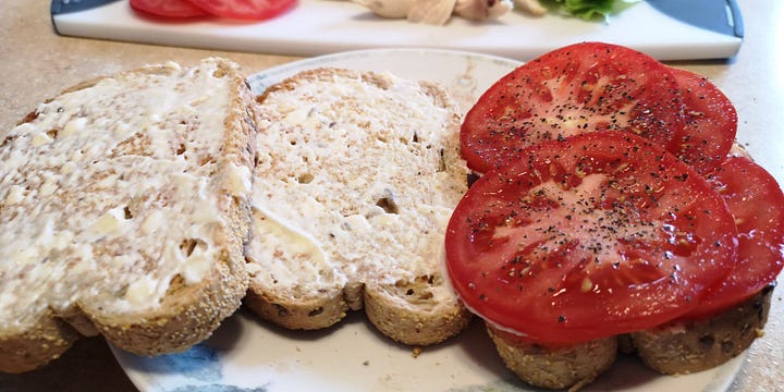 Déposer les tomates tranchées sur la première tranche de pain (avec mayo).