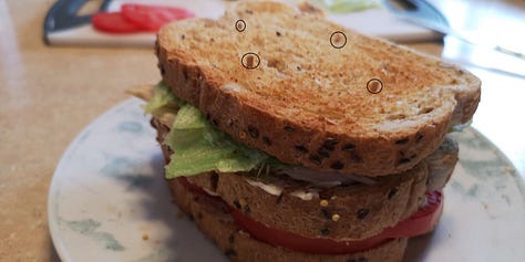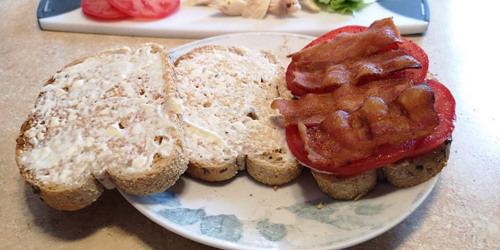 Déposer la 2e tranche de pain sur le bacon (côté mayo vers le bas).